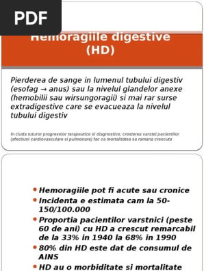 vizitati articolul complet aici : https://ro.scribd.com/presentation/262674024/hemoragia-digestiva-superioara O să ai statistică și procentaje de parcurgere; Hemoragia externa este usor de recunoscut: In cazul in care evaluarea politraumatizatului evidentiaza o hemoragie se vor institui masurile de oprire a hemoragiei (hemostaza).