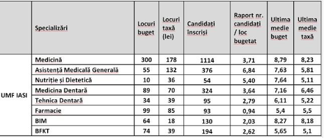 La admiterea din 2017 ultima medie la buget, la medicină generală, este 8,90, un salt spectaculos comparativ cu anul trecut, când ultima medie la buget a fost 7.87, iar ultima medie a.