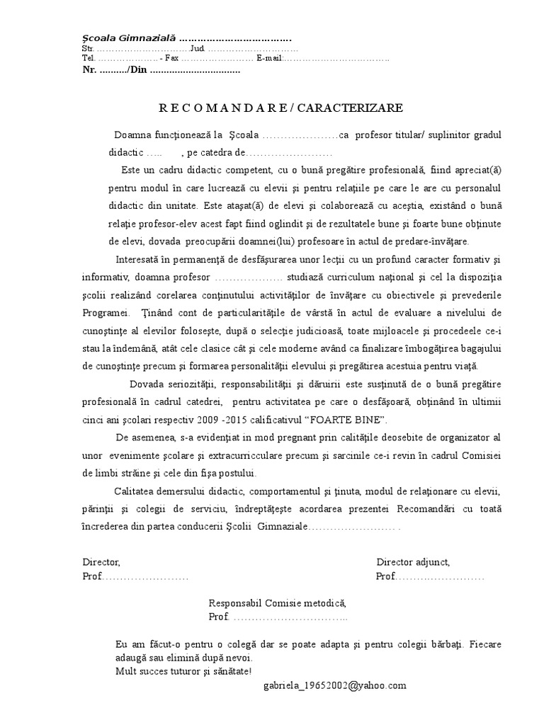Caracterizare profesor gradatie de merit. Check spelling or type a new query. Maybe you would like to learn more about one of these?