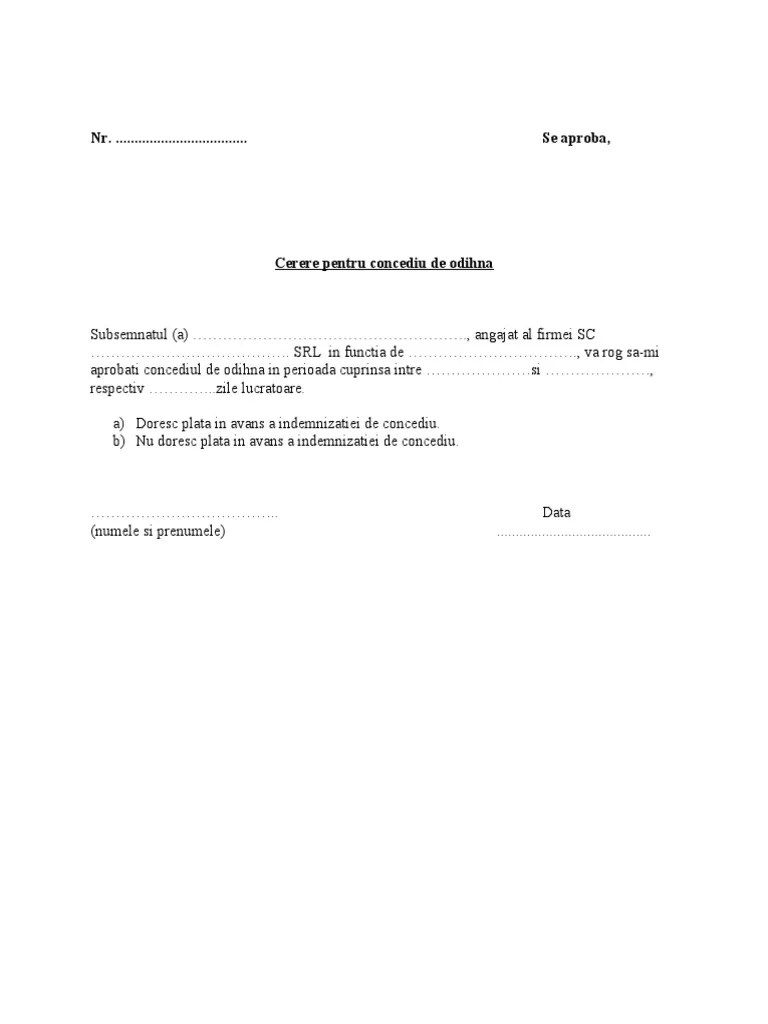 Cerere Concediu Odihna 2017 : Cerere Tip Pentru Concediu De Odihna Hjasbd