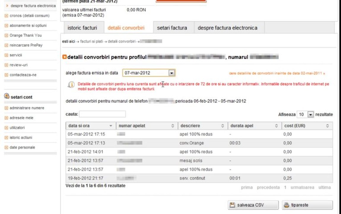 Www.orange.ro Factura Detalii Convorbiri - FacturÄ PlÄÅ£i Si Consum Orange Help. Pentru detalii despre destinații internaționale speciale și premium consultă secțiunea bine de . Costul serviciilor de roaming (în special al serviciilor de date) în afara ue poate fi foarte ridicat. Pentru a evita facturile uriașe, . Ce contine detalierea in cazul in care beneficiez de factura detaliata? Câstigă un smart tv sau un telefon de top cu newsletterul orange.