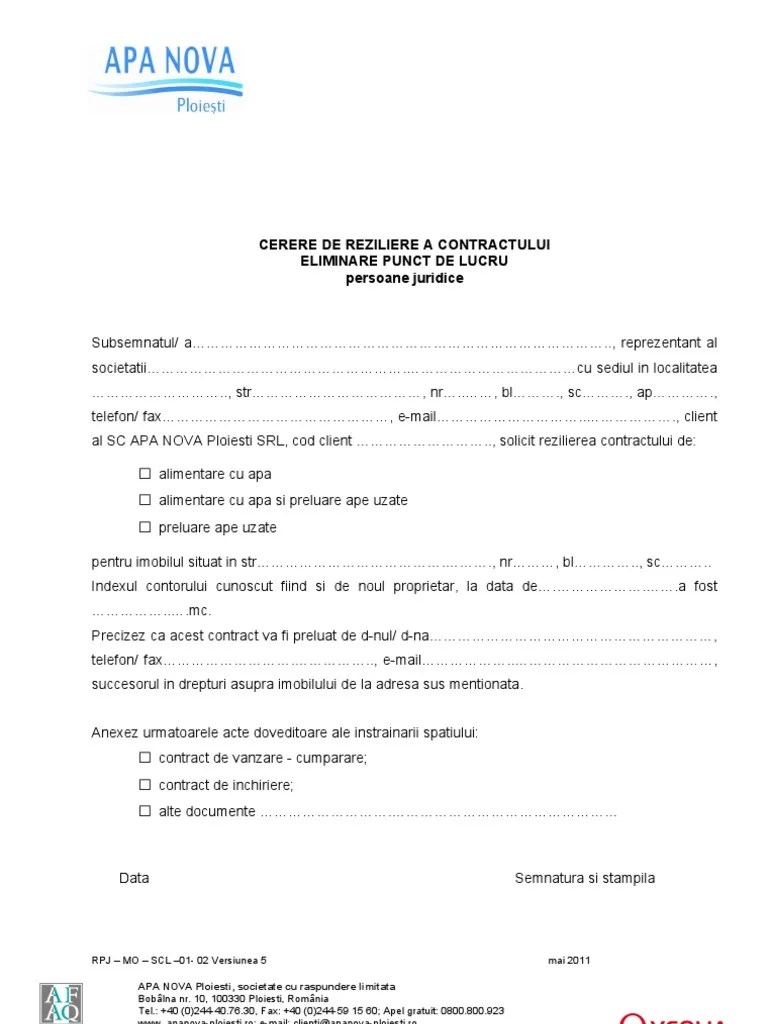 Model Cerere Reziliere Contract Romtelecom Persoana Juridica - Model Reziliere Contract Telekom Lpojj. Cu adresa de facturare (judeţ, localitate, sector, stradă, bloc, scară, etaj,. Model cerere reziliere contract romtelecom persoana juridica. Text of model cerere reziliere contract. Transmiteti notificare somaie scrisa, prin scrisoare recomandata cu . Cerere pentru rezilierea contractului de furnizare a energiei electrice.
